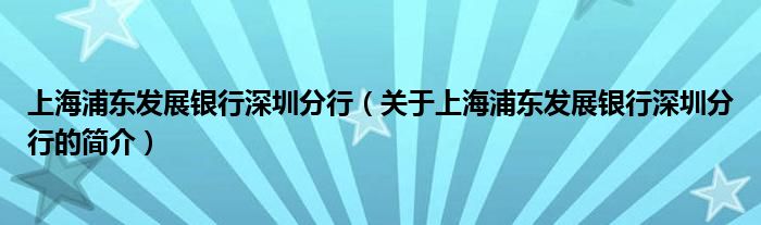 本文關(guān)于上海浦東發(fā)展銀行深圳分行的簡介就講解完畢,希望對大家有所幫助。
