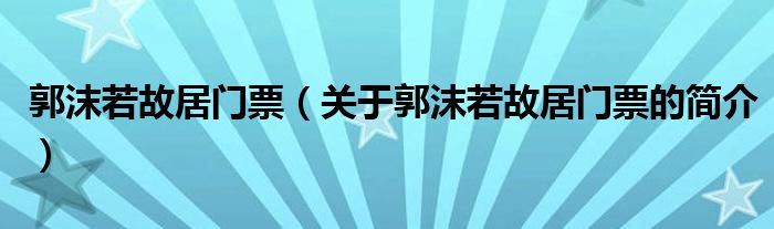 本文關于郭沫若故居門票的簡介就講解完畢,希望對大家有所幫助。