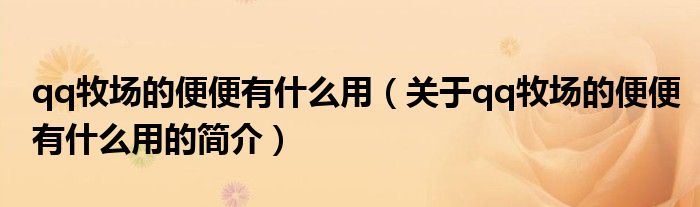 本文關于qq牧場的便便有什么用的簡介就講解完畢,希望對大家有所幫助。