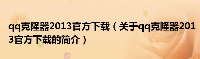 本文關于qq克隆器2013官方下載的簡介就講解完畢,希望對大家有所幫助。