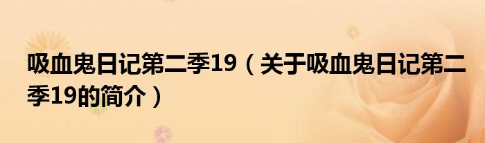 大家好,吸血鬼日記第二季19,關(guān)于吸血鬼日記第二季19的簡介很多人還不知道,現(xiàn)在讓我們一起來看看吧!