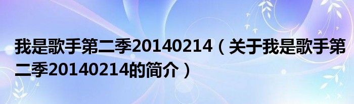 本文關于我是歌手第二季20140214的簡介就講解完畢,希望對大家有所幫助。