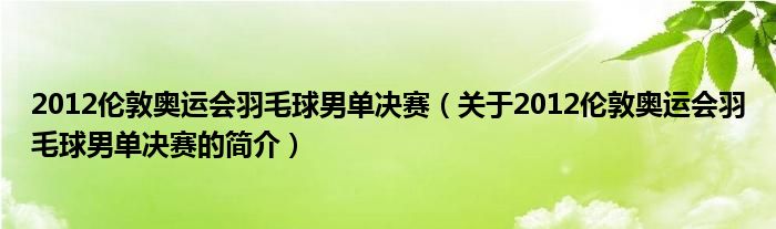 大家好,2012倫敦奧運(yùn)會(huì)羽毛球男單決賽,關(guān)于2012倫敦奧運(yùn)會(huì)羽毛球男單決賽的簡(jiǎn)介很多人還不知道,現(xiàn)在讓我們一起來看看吧!