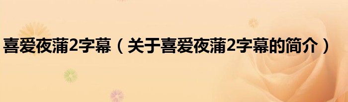 本文關于喜愛夜蒲2字幕的簡介就講解完畢,希望對大家有所幫助。