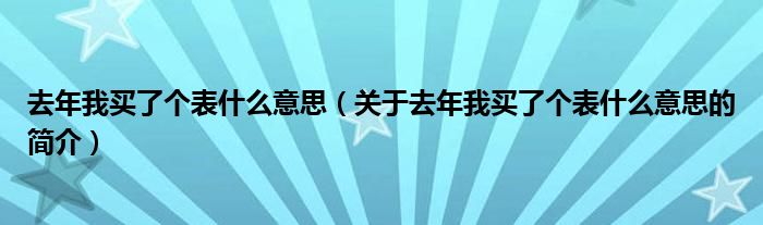 本文關(guān)于去年我買(mǎi)了個(gè)表什么意思的簡(jiǎn)介就講解完畢,希望對(duì)大家有所幫助。