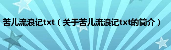大家好,苦兒流浪記txt,關(guān)于苦兒流浪記txt的簡(jiǎn)介很多人還不知道,現(xiàn)在讓我們一起來(lái)看看吧!