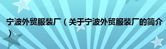 本文關于寧波外貿服裝廠的簡介就講解完畢,希望對大家有所幫助。