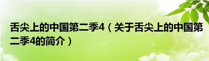 本文關于舌尖上的中國第二季4的簡介就講解完畢,希望對大家有所幫助。