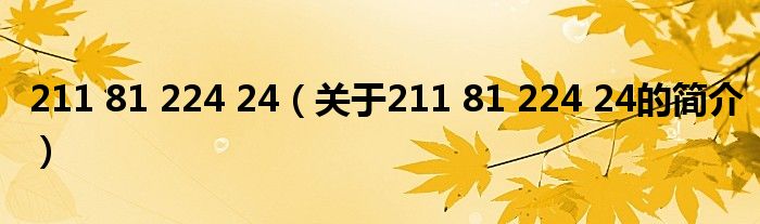 大家好,211 81 224 24,關(guān)于211 81 224 24的簡介很多人還不知道,現(xiàn)在讓我們一起來看看吧!