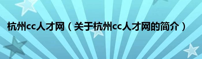 本文關于杭州cc人才網的簡介就講解完畢,希望對大家有所幫助。