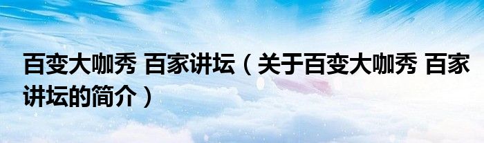 大家好,百變大咖秀 百家講壇,關(guān)于百變大咖秀 百家講壇的簡介很多人還不知道,現(xiàn)在讓我們一起來看看吧!