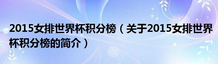 本文關于2015女排世界杯積分榜的簡介就講解完畢,希望對大家有所幫助。