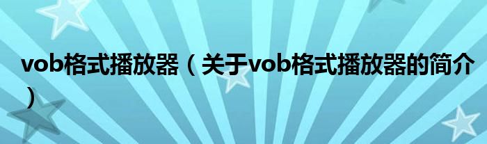 大家好,vob格式播放器,關(guān)于vob格式播放器的簡(jiǎn)介很多人還不知道,現(xiàn)在讓我們一起來看看吧!