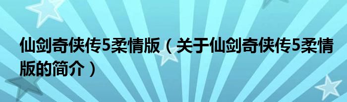 本文關于仙劍奇俠傳5柔情版的簡介就講解完畢,希望對大家有所幫助。