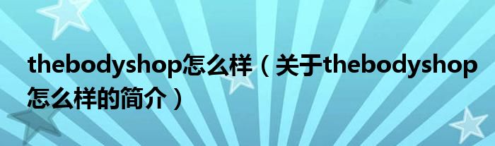 本文關于thebodyshop怎么樣的簡介就講解完畢,希望對大家有所幫助。