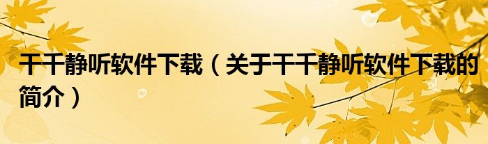 本文關于干千靜聽軟件下載的簡介就講解完畢,希望對大家有所幫助。