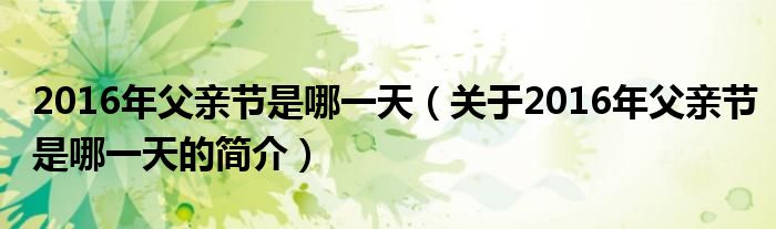 本文關(guān)于2016年父親節(jié)是哪一天的簡介就講解完畢,希望對大家有所幫助。
