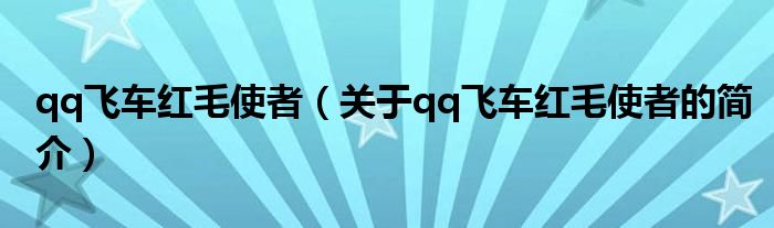 本文關于qq飛車紅毛使者的簡介就講解完畢,希望對大家有所幫助。