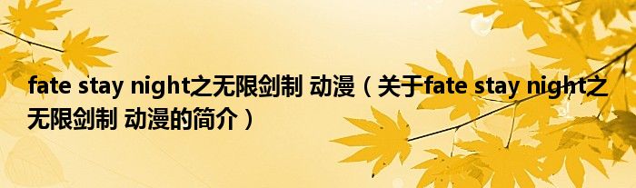 本文關于fate stay night之無限劍制 動漫的簡介就講解完畢,希望對大家有所幫助。