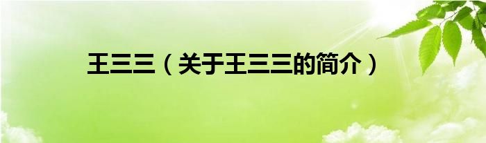 大家好,王三三,關于王三三的簡介很多人還不知道,現在讓我們一起來看看吧!