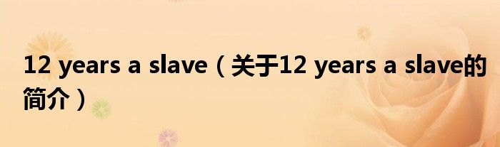 大家好,12 years a slave,關于12 years a slave的簡介很多人還不知道,現在讓我們一起來看看吧!