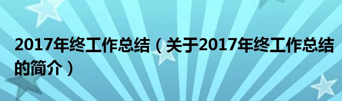 本文關于2017年終工作總結的簡介就講解完畢,希望對大家有所幫助。