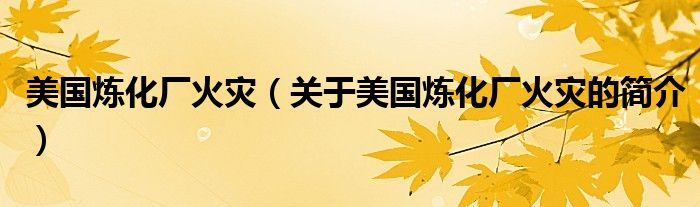 本文關于美國煉化廠火災的簡介就講解完畢,希望對大家有所幫助。