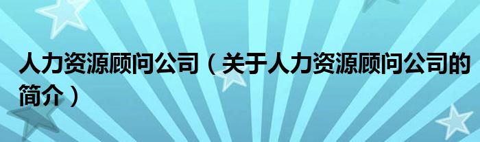 本文關于人力資源顧問公司的簡介就講解完畢,希望對大家有所幫助。