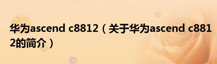 大家好,華為ascend c8812,關于華為ascend c8812的簡介很多人還不知道,現在讓我們一起來看看吧!