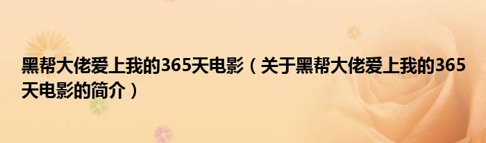 本文關于黑幫大佬愛上我的365天電影的簡介就講解完畢,希望對大家有所幫助。