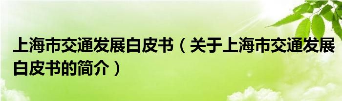 大家好,上海市交通發展白皮書,關于上海市交通發展白皮書的簡介很多人還不知道,現在讓我們一起來看看吧!