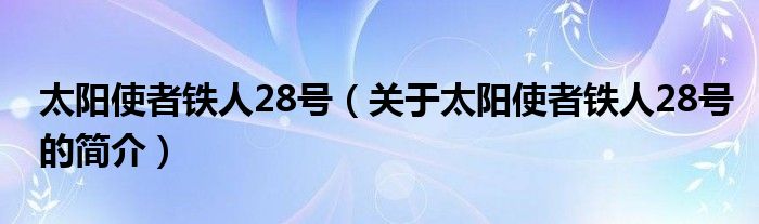 大家好,太陽使者鐵人28號,關于太陽使者鐵人28號的簡介很多人還不知道,現在讓我們一起來看看吧!