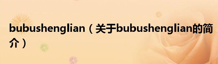 本文關于bubushenglian的簡介就講解完畢,希望對大家有所幫助。