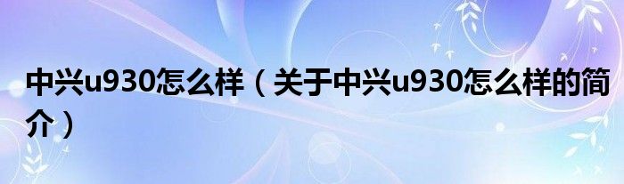 本文關于中興u930怎么樣的簡介就講解完畢,希望對大家有所幫助。