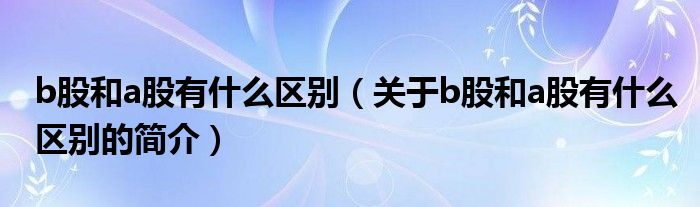 本文關于b股和a股有什么區別的簡介就講解完畢,希望對大家有所幫助。