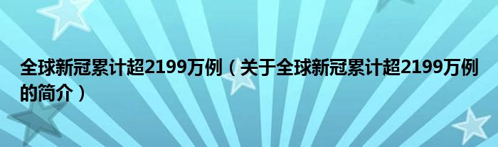 本文關于全球新冠累計超2199萬例的簡介就講解完畢,希望對大家有所幫助。