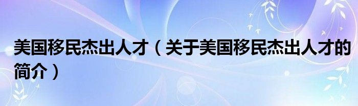 本文關(guān)于美國移民杰出人才的簡介就講解完畢,希望對大家有所幫助。