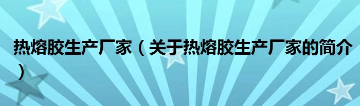 本文關于熱熔膠生產廠家的簡介就講解完畢,希望對大家有所幫助。