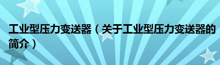 大家好,工業(yè)型壓力變送器,關于工業(yè)型壓力變送器的簡介很多人還不知道,現(xiàn)在讓我們一起來看看吧!