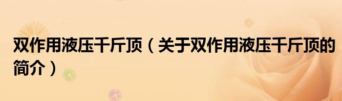 本文關于雙作用液壓千斤頂的簡介就講解完畢,希望對大家有所幫助。