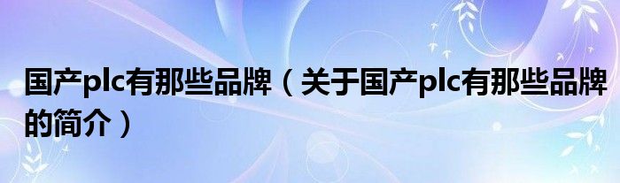 本文關(guān)于國產(chǎn)plc有那些品牌的簡介就講解完畢,希望對(duì)大家有所幫助。