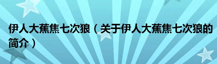 本文關于伊人大蕉焦七次狼的簡介就講解完畢,希望對大家有所幫助。