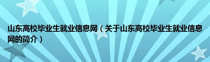 大家好,山東高校畢業(yè)生就業(yè)信息網,關于山東高校畢業(yè)生就業(yè)信息網的簡介很多人還不知道,現(xiàn)在讓我們一起來看看吧!
