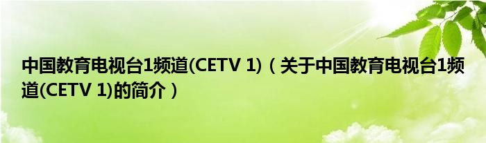 本文關(guān)于中國教育電視臺1頻道(CETV 1)的簡介就講解完畢,希望對大家有所幫助。