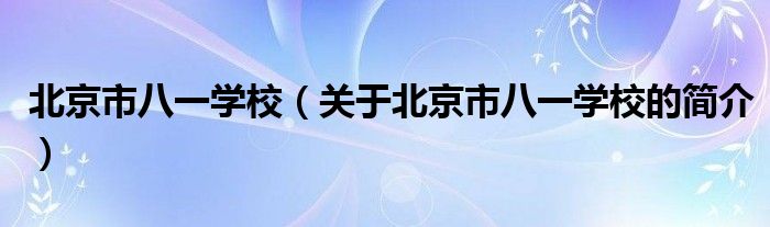 大家好,北京市八一學校,關于北京市八一學校的簡介很多人還不知道,現在讓我們一起來看看吧!