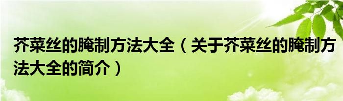 本文關于芥菜絲的腌制方法大全的簡介就講解完畢,希望對大家有所幫助。
