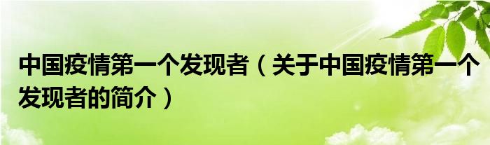 本文關(guān)于中國疫情第一個(gè)發(fā)現(xiàn)者的簡介就講解完畢,希望對大家有所幫助。