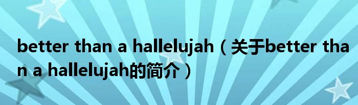 本文關(guān)于better than a hallelujah的簡(jiǎn)介就講解完畢,希望對(duì)大家有所幫助。