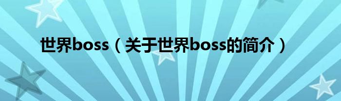 大家好,世界boss,關(guān)于世界boss的簡介很多人還不知道,現(xiàn)在讓我們一起來看看吧!