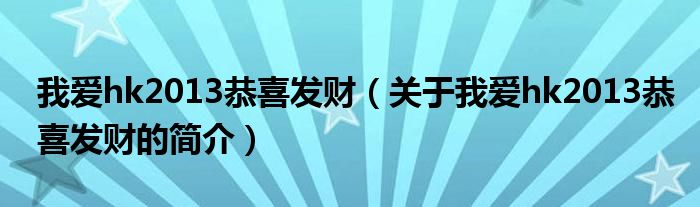 本文關于我愛hk2013恭喜發財的簡介就講解完畢,希望對大家有所幫助。